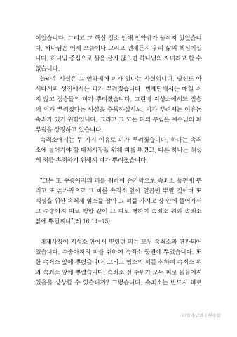의 죄를 속죄하기 위해서 피가 뿌려졌습니다.