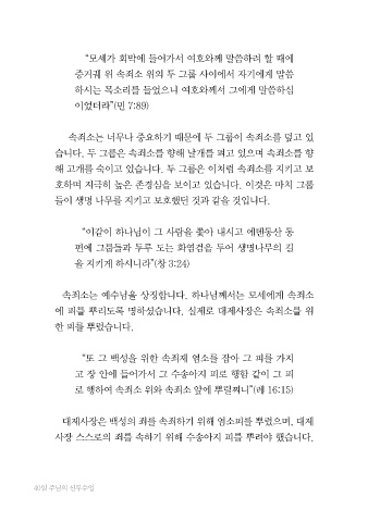 에 피를 뿌리도록 명하셨습니다. 실제로 대제사장은 속죄소를 위