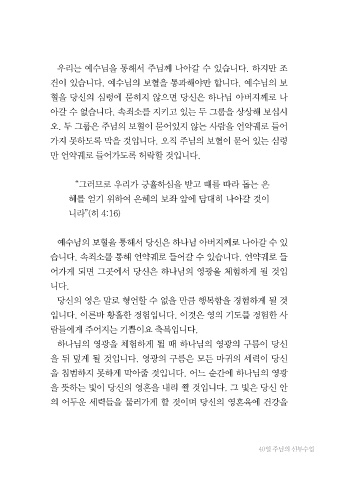 혈을 당신의 심령에 묻히지 않으면 당신은 하나님 아버지께로 나