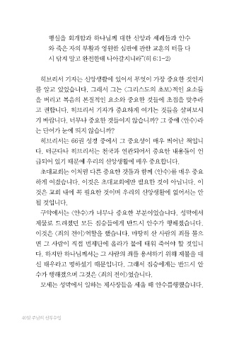시 닦지 말고 완전한데 나아갈지니라”(히 6:1-2)
