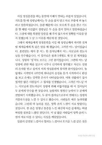 기도를 할 때 성령님께서는 두 손을 잡지 말고 따로 무릎에 펴 놓으