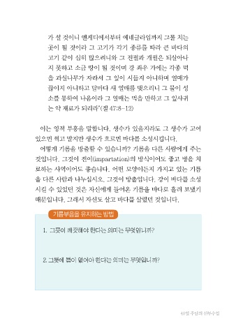 지 못하고 소금 땅이 될 것이며 강 좌우 가에는 각종 먹