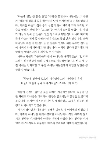 문입니다. 하지만 마귀는 하나님을 대적하였고 그것은 하늘의 전