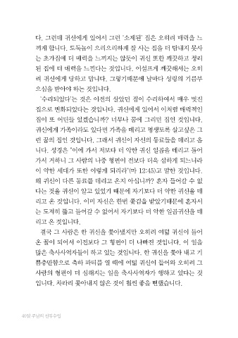 가서 거하니 그 사람의 나중 형편이 전보다 더욱 심하게 되느니라