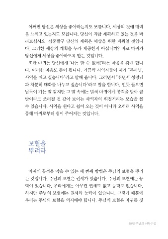 마귀의 공격을 막을 수 있는 세 번째 방법은 주님의 보혈을 뿌리