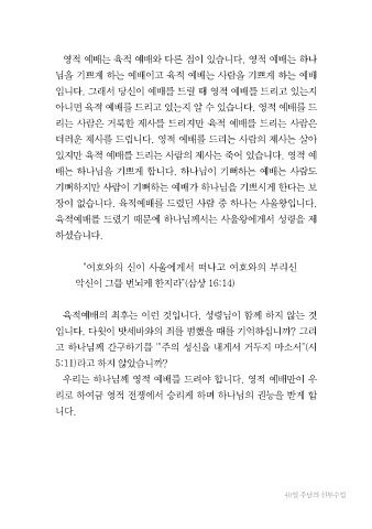 입니다. 그래서 당신이 예배를 드릴 때 영적 예배를 드리고 있는지