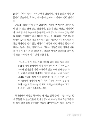 “너희는 믿지 않는 자와 멍에를 같이 하지 말라 의와