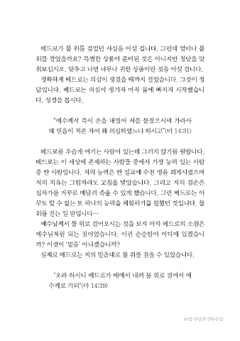 답입니다. 베드로는 의심이 생기자 마자 물에 빠지지 시작했습니