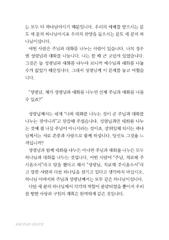 나누는 것이니라”고 말씀해 주셨습니다. 성령님과만 대화를 나누