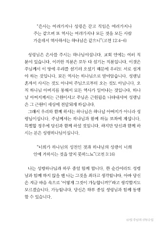 나는 성령하나님과 하루 종일 함께 합니다. 한 순간이라도 성령