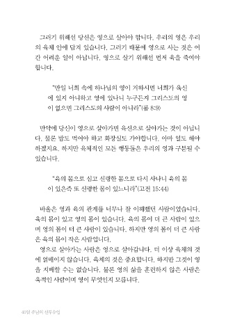 영으로 살아가는 사람은 영으로 살아갑니다. 더 이상 육체의 것