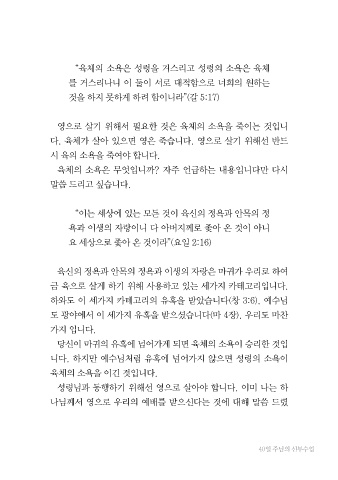 영으로 살기 위해서 필요한 것은 육체의 소욕을 죽이는 것입니