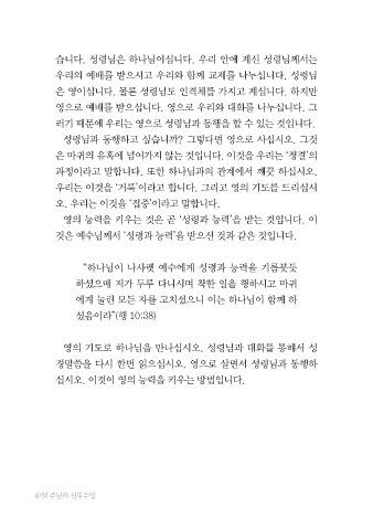 영의 능력을 키우는 것은 곧 ‘성령과 능력’을 받는 것입니다. 이