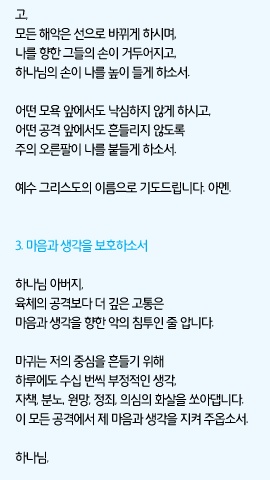 이 모든 공격에서 제 마음과 생각을 지켜 주옵소서.