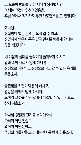 주님 앞에서 정직하지 못한 태도였음을 고백합니다.