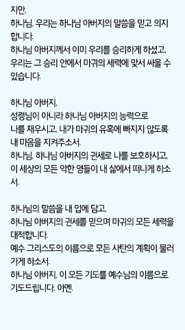 하나님 아버지의 권세를 믿으며 마귀의 모든 세력을
