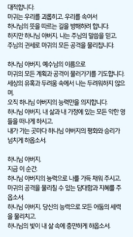 주님의 권세로 마귀의 모든 공격을 물리칩니다.