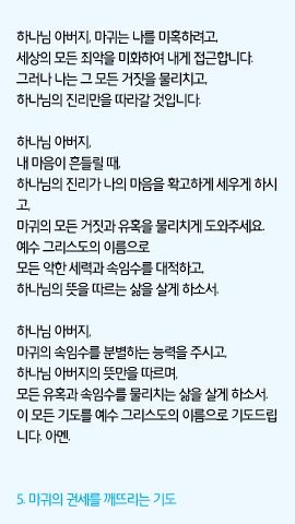 모든 유혹과 속임수를 물리치는 삶을 살게 하소서.