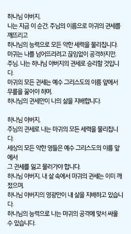 주님의 권세로 나는 마귀의 모든 세력을 물리칩니