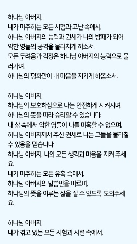 내 삶 속에서 악한 영들이 나를 미혹할 수 없으며,