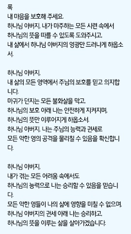 내 삶의 모든 영역에서 주님의 보호를 믿고 의지합