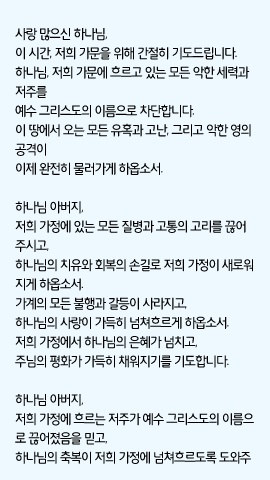 이 시간, 저희 가문을 위해 간절히 기도드립니다.