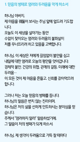 1. 믿음의 방패로 염려와 두려움을 막게 하소서