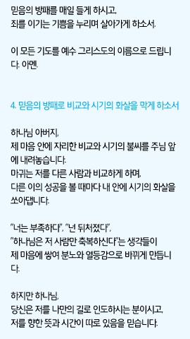 4. 믿음의 방패로 비교와 시기의 화살을 막게 하소서