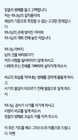 믿음의 방패로 오늘도 저를 지켜 주소서.