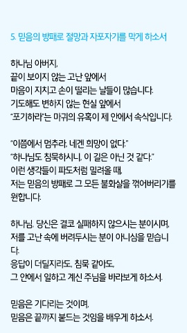 5. 믿음의 방패로 절망과 자포자기를 막게 하소서