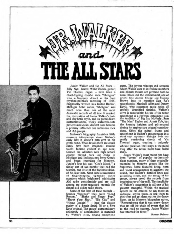 by Walker's clear, singing saxophone Robert Palmer