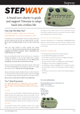 services/ therapies that can help you adapt back into civvie life. These steps will be spread over a 12 month period. It includes intervention