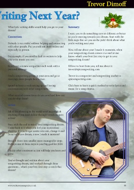 Find a songwriting group in your area and go to Trevor is a songwriter and songwriting teacher at