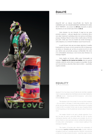 EQUALITY IS THE ONLY SCULPTURE IN MY ENTIRE CAREER THAT I HAVE DELIBERATELY REPRODUCED IN TWO FORMATS: a 130 cm version — imposing and full of presence — and a more intimate 25 cm version.