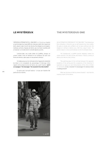 VERSION ALTERNATIVE DU « BAD BOY », le Mystérieux incarne un personnage tout aussi affirmé, mais plus subtil. Son regard est droit, assuré, mais il ne dit rien de plus. Son élégance est soignée : manteau ceinturé, chapeau de feutre, sac à la main, il semble prêt à traverser un monde dont il connaît déjà les secrets.