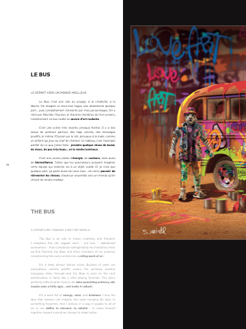 Le Bus, c’est une ode au voyage, à la créativité, à la liberté. J’ai imaginé ce vieux bus tagué, usé, abandonné quelque part... puis complètement réinventé par mes personnages. On y retrouve Paschat, l’Ourson, et d’autres membres de mon univers, transformant ce bus rouillé en œuvre d’art roulante.