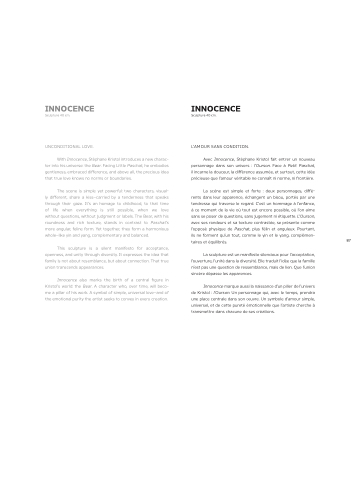 Innocence marque aussi la naissance d’un pilier de l’univers de Kristol : l’Ourson. Un personnage qui, avec le temps, prendra une place centrale dans son œuvre. Un symbole d’amour simple, universel, et de cette pureté émotionnelle que l’artiste cherche à transmettre dans chacune de ses créations.