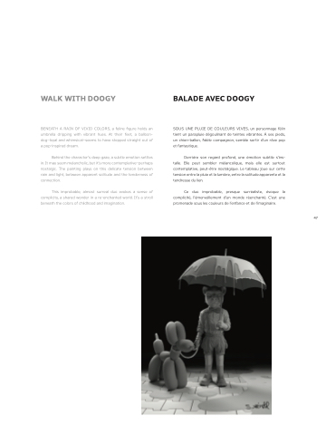 Ce duo improbable, presque surréaliste, évoque la complicité, l’émerveillement d’un monde réenchanté. C’est une promenade sous les couleurs de l’enfance et de l’imaginaire.