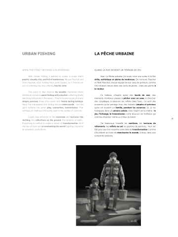 This piece is also inspired by seaside memories—those childhood moments spent fishing with a bucket, collecting shells, watching reflections in the water... They’re memories we all share: simple, precious times often spent with family during holidays. Here, I’ve transposed that feeling into an urban world — but the spirit remains the same: play, connection, transmission. That softness of childhood still exists, even in the middle of concrete.