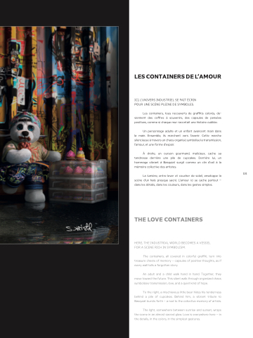 Les containers, tous recouverts de graffitis colorés, de- viennent des coffres à souvenirs, des capsules de pensées positives, comme si chaque mur racontait une histoire oubliée.