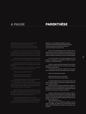 And then there’s this desire to live slowly. To not unders- tand everything. To let life carry us, without always trying to make sense of it.
