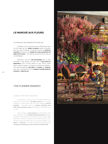 This painting is a piece of me. The Flower Market was inspired by my early days in the gallery world, when I worked alongside my father. Back then, we often exhibited classical paintings — especially works by copyists depicting early 20th-century Parisian scenes: markets, florists, nostalgic street corners.