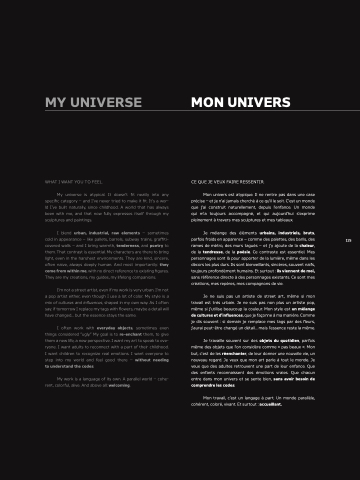 My universe is atypical. It doesn’t fit neatly into any specific category — and I’ve never tried to make it fit. It’s a wor- ld I’ve built naturally, since childhood. A world that has always been with me, and that now fully expresses itself through my sculptures and paintings.