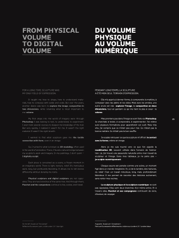It taught me how to shape, how to understand mate- rials, how to compose with solids and voids. But over the years, another desire was born: to explore the image, composition in two dimensions, while retaining what is most important to me: volume.