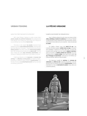 This piece is also inspired by seaside memories—those childhood moments spent fishing with a bucket, collecting shells, watching reflections in the water... They’re memories we all share: simple, precious times often spent with family during holidays. Here, I’ve transposed that feeling into an urban world — but the spirit remains the same: play, connection, transmission. That softness of childhood still exists, even in the middle of concrete.