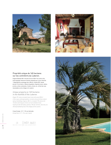 Superb grounds with valleys, pastures, 100-year-old trees, olive trees, etc. offering breathtaking views of the villages and the Luberon.
