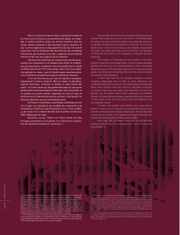 Aujourd’hui encore, l’Italie et la France restent les deux principaux producteurs et les grands crus français font la réputa- tion de l’excellence française en ce domaine. n