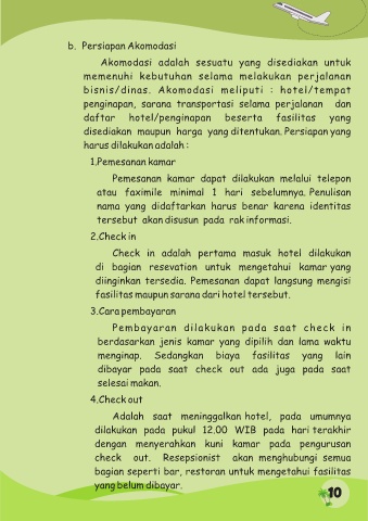 bisnis/dinas. Akomodasi meliputi : hotel/tempat