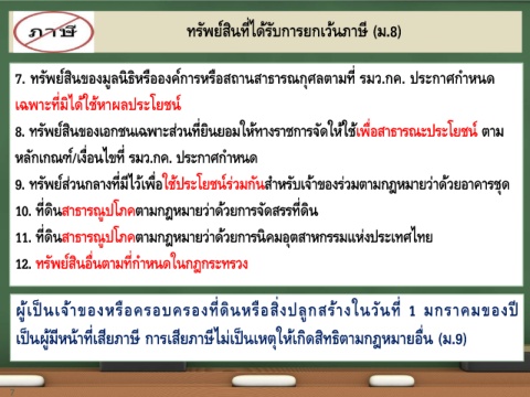 ทรัพย์สินทีได้รับการยกเว้นภาษ (ม.8)