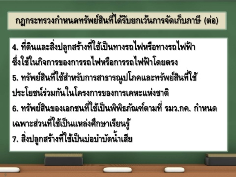 กฎกระทรวงกําหนดทรัพย์สินทีได้รับยกเว้นการจัดเก็บภาษ (ต่อ)